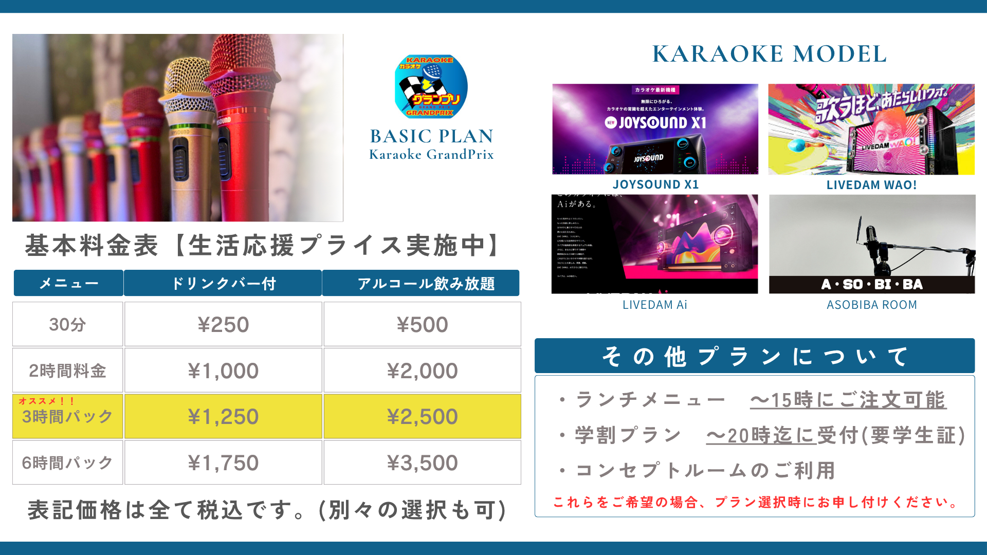 他店では新機種を多く導入できなくてもカラオケグランプリでは導入できるんです!それは本社がカラオケ機器の卸しの会社だから可能なんです。カラオケ機器の販売・レンタル、設置、メンテナンスまで行う会社ですから言わばカラオケのプロ集団のお店というわけなんです。そのためいい音のご提供にはとても力を入れていますので安心して歌っていただけると思います。